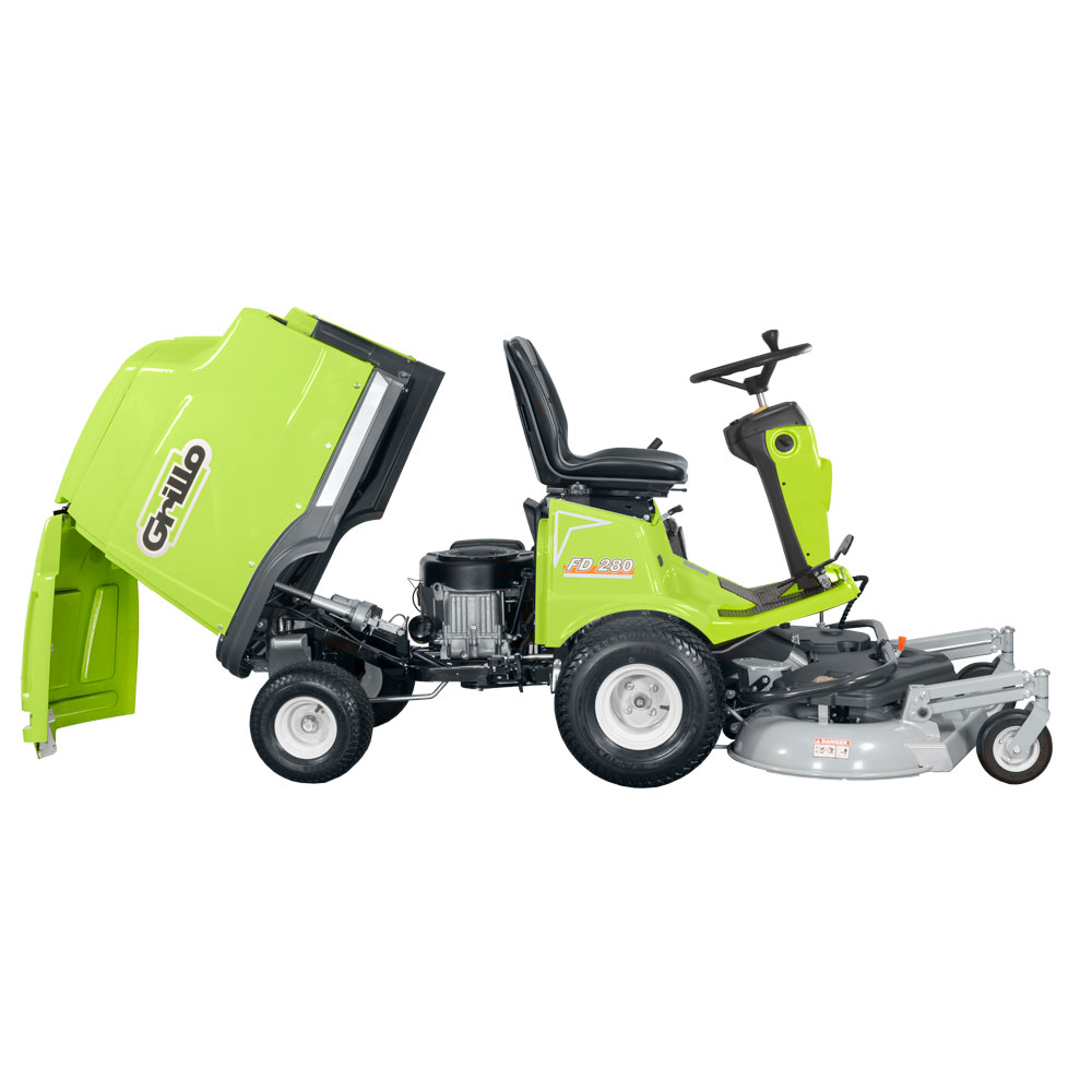 Der Grillo FD 280 ist ein hydrostatischer Frontmäher mit Sammelsystem für hohe Flächenleistung und saubere Ergebnisse, auch unter anspruchsvollen Bedingungen. Das frontal angeordnete, freibewegliche Mähdeck bietet beste Sicht auf die Arbeitsfläche und ermöglicht präzises Mähen unter Sträuchern und tiefen Ästen, wodurch Nacharbeiten deutlich reduziert werden. Das Grillo Overblow-System unterstützt eine besonders zuverlässige Aufnahme, indem der Gras-Luft-Strom im Ladekanal beschleunigt wird und dadurch auch bei feuchtem Gras oder Laub eine hohe Sammelleistung ohne Verstopfungen erreicht wird. Dank Lenkersteuerung, kompakter Bauweise und extrem kleinem Wendekreis lässt sich der FD 280 sehr leicht manövrieren und bleibt auch in engen Bereichen souverän beherrschbar. Das Messer- und Deckkonzept ist auf effizientes Schneiden und Fördern ausgelegt, während die stufenlose Fahrgeschwindigkeit und die Differentialsperre zusätzliche Kontrolle und Traktion auf schwierigem Untergrund bieten. Der große Grasfangkorb reduziert Entleerpausen und lässt sich komfortabel vom Fahrersitz aus entleeren, was den Arbeitsfluss spürbar verbessert. Insgesamt ist der FD 280 eine robuste, professionell ausgelegte Lösung für hochwertige Rasen- und Laubpflege mit starker Sammelperformance und hoher Alltagstauglichkeit.