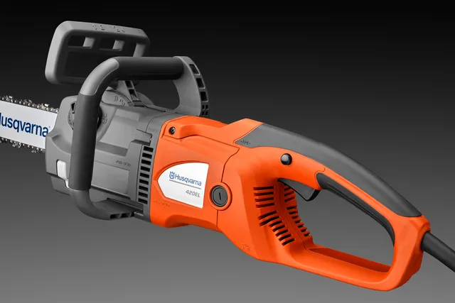 Husqvarna 420EL ist eine elektrische Kettensäge für Hausbesitzer und Handwerker, die eine einfach zu bedienende Säge mit hoher Kettengeschwindigkeit für schnelle, saubere Schnitte suchen. Das schlanke Gehäuse bietet gute Manövrierbarkeit und Kontrolle, während ergonomischer Griff sowie das leichte, ausgewogene Design Arme, Schultern und Rücken entlasten. Praktisch im Alltag: Kette spannen sowie Schiene und Kette montieren geht schnell und werkzeuglos – ideal auch für Arbeiten in Innenräumen.